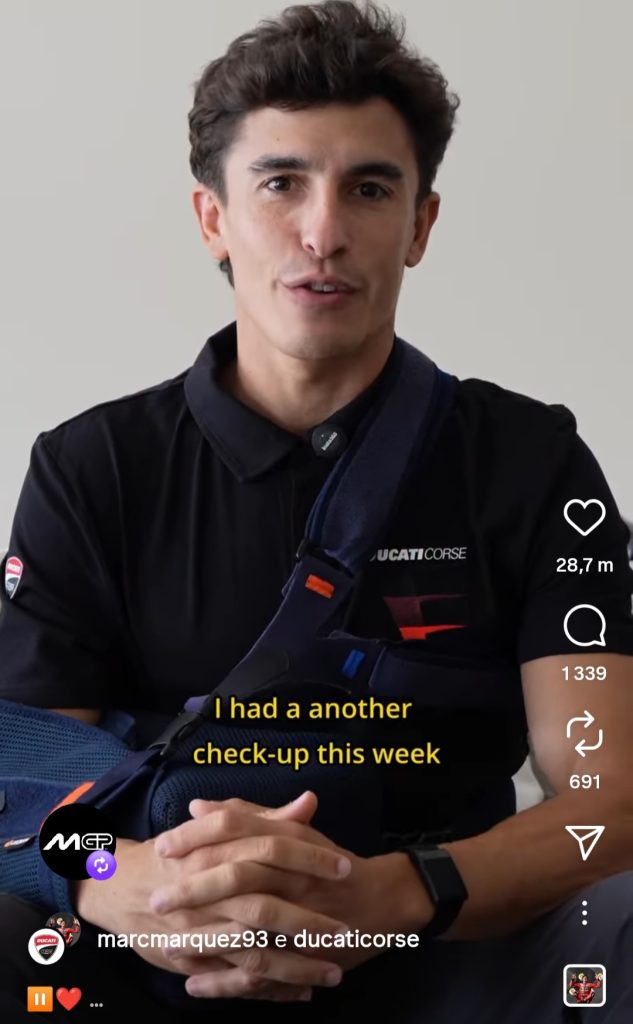A Ducati confirmou, através de uma publicação no seu Instagram oficial, que Marc Márquez não voltará a competir em 2025, tudo por causa da lesão que sofreu recentemente. A informação foi também partilhada pelo próprio piloto espanhol, que agradeceu o apoio dos fãs e da equipa durante o período de recuperação.